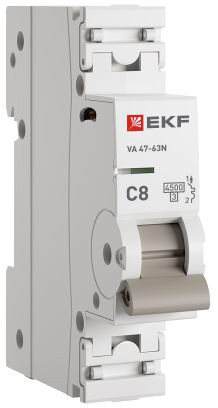Автоматический выключатель ВА 47-63N PROxima, 1 полюс, 8А, C, 4,5 кА