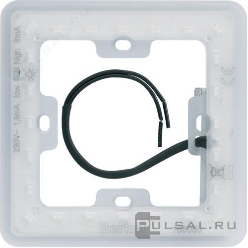 Подключается проводами к электрооборудованию установленному в рамке (розетка, выключатель и т.п.)