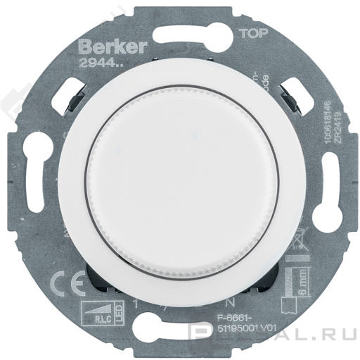 Светорегулятор (диммер) 20-420 Вт/ВА, для LED 3-100 Вт 1930, Glas, поворотно-нажимной, с возможностью управления с 2-х мест, лампы накаливания и галогенные 220В (R), лампы с индукционным (обмоточным) трансформ.(L), лампы с электронным (емкостным) трансформ.(C), диммируемые лампы LED 220В (LEDi тип L), диммируемые лампы LED 220В (LEDi тип C), цвет - полярная белизна глянцевый