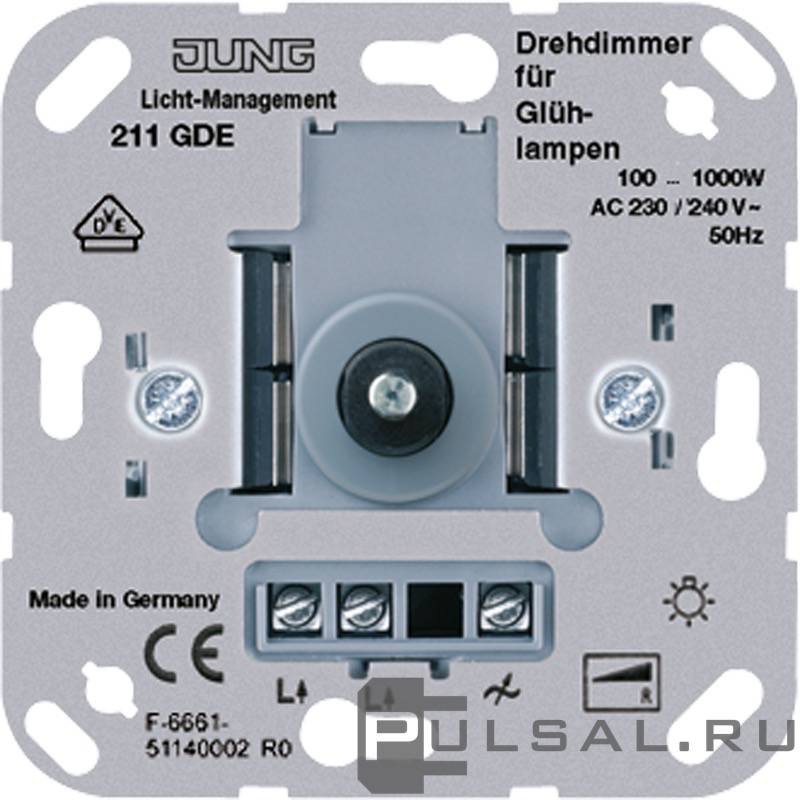 Механизм светорегулятора (диммера) 100-1000 Вт A VIVA, A creation, A flow, A 550, AS 500, CD 500, CD plus, LS 990, LS plus, LS 990 Les Couleurs Le Corbusier, LS ZERO, LS-design, SL 500, ECO profi и ECO profi Standart, ECO profi design (ECO Profi Deco), поворотно-нажимной, с возможностью управления с 2-х мест, лампы накаливания и галогенные 220В (R)