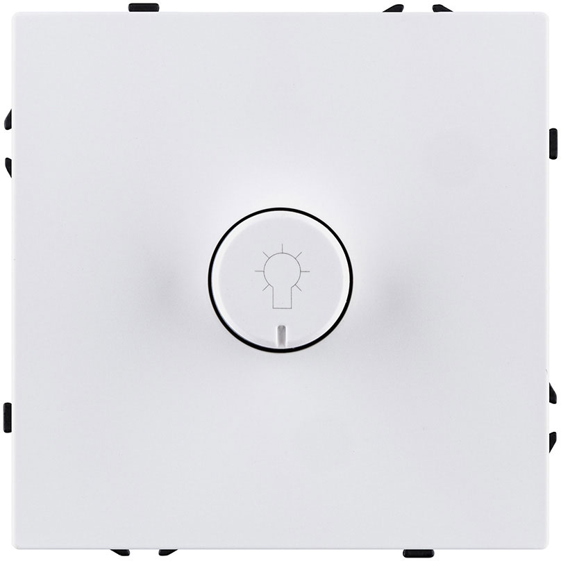 Светорегулятор для светодиодных ламп 5-200 Вт/ВА Eclipse, поворотно-нажимной, лампы накаливания и галогенные 220В (R), лампы с индукционным (обмоточным) трансформ.(L), лампы с электронным (емкостным) трансформ.(C), диммируемые лампы LED 220В (LEDi тип L), диммируемые лампы LED 220В (LEDi тип C), цвет - белый глянцевый