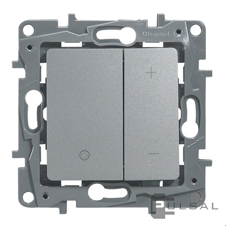 Механизм светорегулятора (диммера) 3-400 Вт/ВА, для LED 3-75 ВА Etika, клавишный, с возможностью управления с 2-х мест, лампы накаливания и галогенные 220В (R), лампы с индукционным (обмоточным) трансформ.(L), лампы с электронным (емкостным) трансформ.(C), диммируемые лампы LED 220В (LEDi тип L), диммируемые лампы LED 220В (LEDi тип C), цвет - алюминий