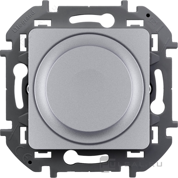 Светорегулятор (диммер) 5-300 Вт/ВА, для LED 5-75 ВА Inspiria, поворотно-нажимной, с возможностью управления с 2-х мест, лампы накаливания и галогенные 220В (R), лампы с индукционным (обмоточным) трансформ.(L), лампы с электронным (емкостным) трансформ.(C), диммируемые лампы LED 220В (LEDi тип L), диммируемые лампы LED 220В (LEDi тип C), цвет - алюминий