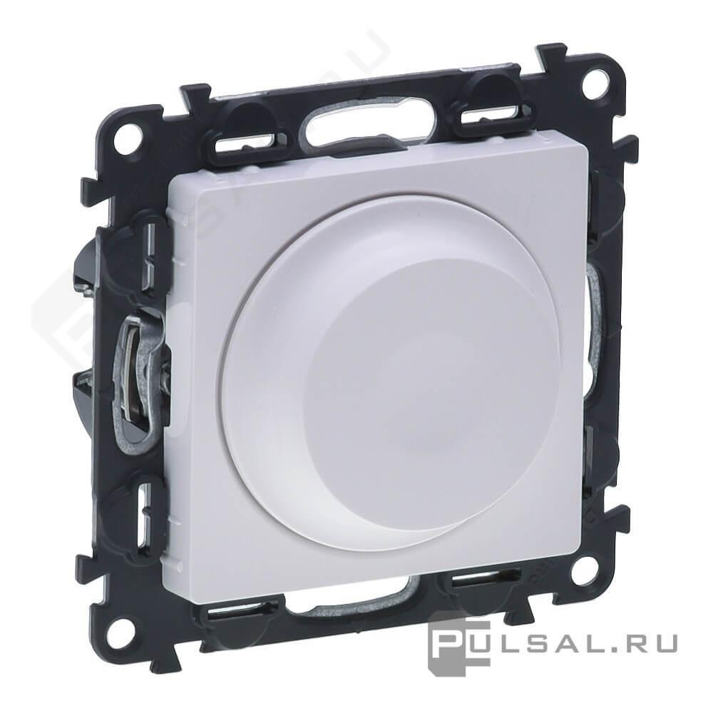 Механизм светорегулятора (диммера) 5-300 Вт/ВА, для LED 5-75 ВА Valena Life, поворотно-нажимной, лампы накаливания и галогенные 220В (R), лампы с индукционным (обмоточным) трансформ.(L), лампы с электронным (емкостным) трансформ.(C), диммируемые лампы LED 220В (LEDi тип L), диммируемые лампы LED 220В (LEDi тип C), цвет - белый
