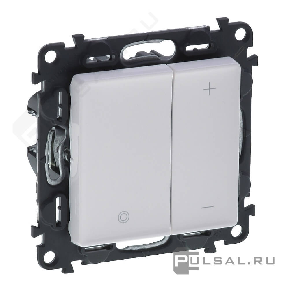 Механизм светорегулятора (диммера) 5-400 Вт/ВА, для LED 5-75 ВА Valena Life, клавишный, с возможностью управления с 2-х мест, лампы накаливания и галогенные 220В (R), лампы с индукционным (обмоточным) трансформ.(L), лампы с электронным (емкостным) трансформ.(C), диммируемые лампы LED 220В (LEDi тип L), диммируемые лампы LED 220В (LEDi тип C), цвет - белый