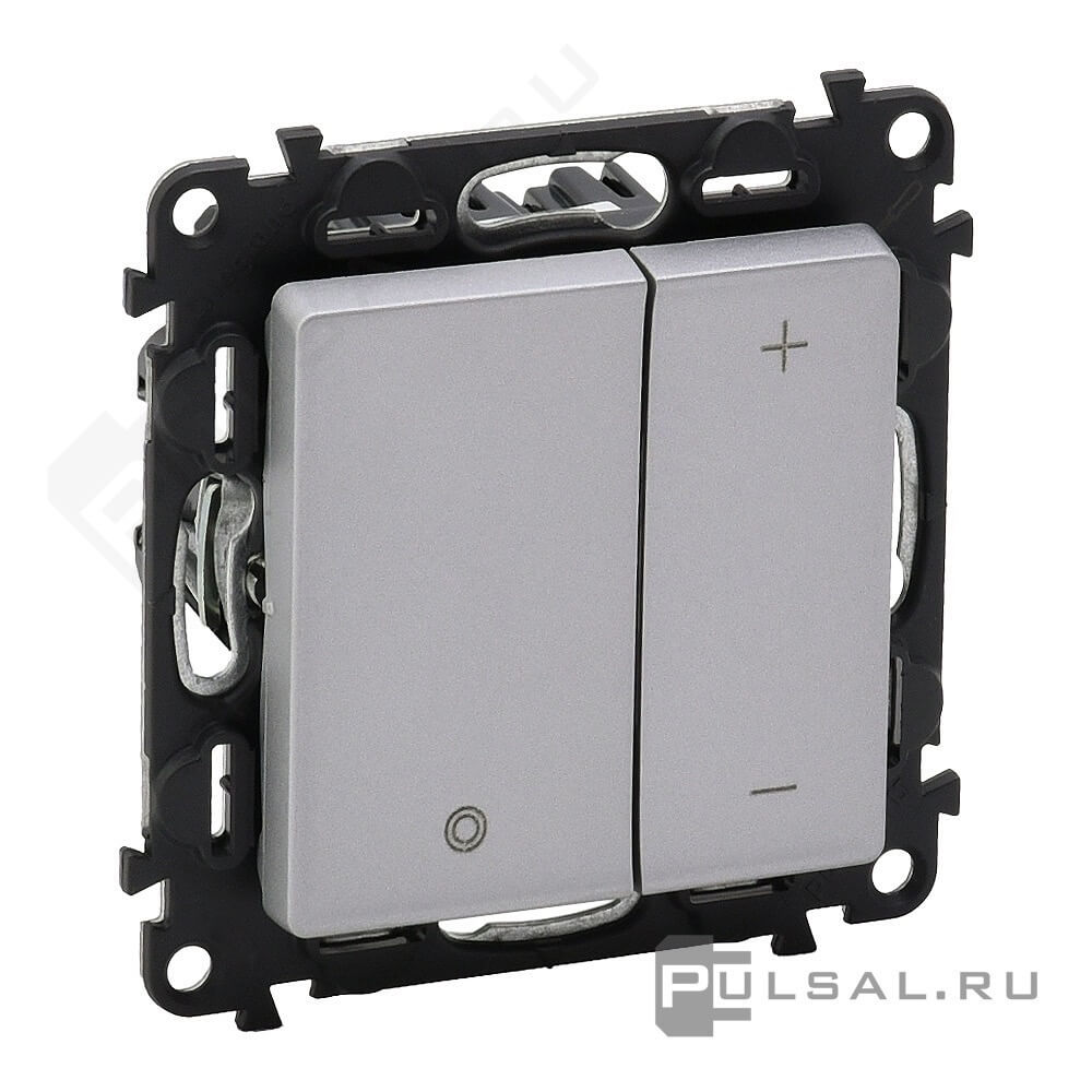 Механизм светорегулятора (диммера) 5-400 Вт/ВА, для LED 5-75 ВА Valena Life, клавишный, с возможностью управления с 2-х мест, лампы накаливания и галогенные 220В (R), лампы с индукционным (обмоточным) трансформ.(L), лампы с электронным (емкостным) трансформ.(C), диммируемые лампы LED 220В (LEDi тип L), диммируемые лампы LED 220В (LEDi тип C), цвет - алюминий