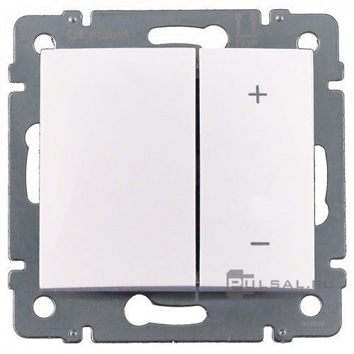 Valena, поворотно-нажимной, с возможностью управления с 2-х мест, лампы накаливания и галогенные 220В (R), лампы с индукционным (обмоточным) трансформ.(L), лампы с электронным (емкостным) трансформ.(C), диммируемые лампы LED 220В (LEDi тип L), диммируемые лампы LED 220В (LEDi тип C), цвет - белый