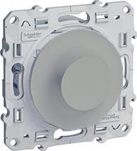Светорегулятор (диммер) 40-600 Вт/ВА Odace, поворотно-нажимной, с возможностью управления с 2-х мест, лампы накаливания и галогенные 220В (R), лампы с индукционным (обмоточным) трансформ.(L), цвет - алюминий
