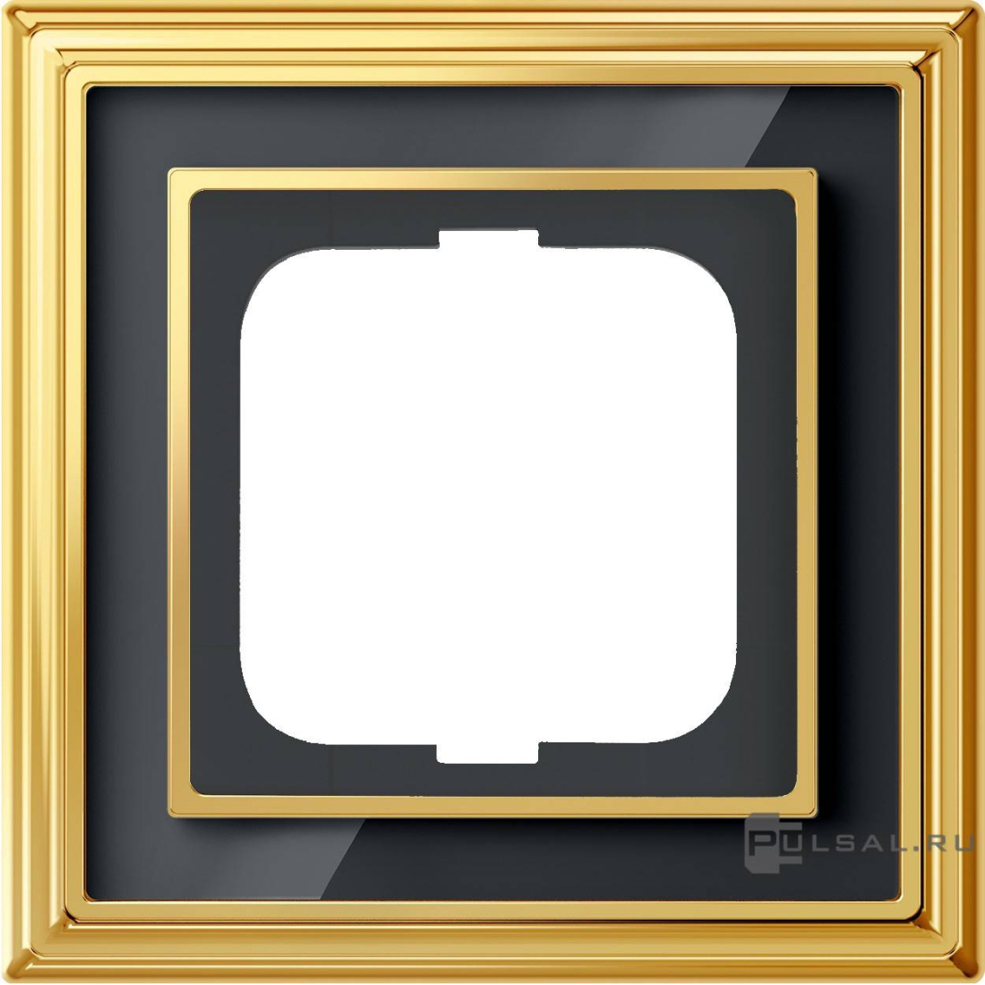 Рамка ДИНАСТИЯ, 1 пост, цвет - черное стекло, латунь полированная, металл, стекло
