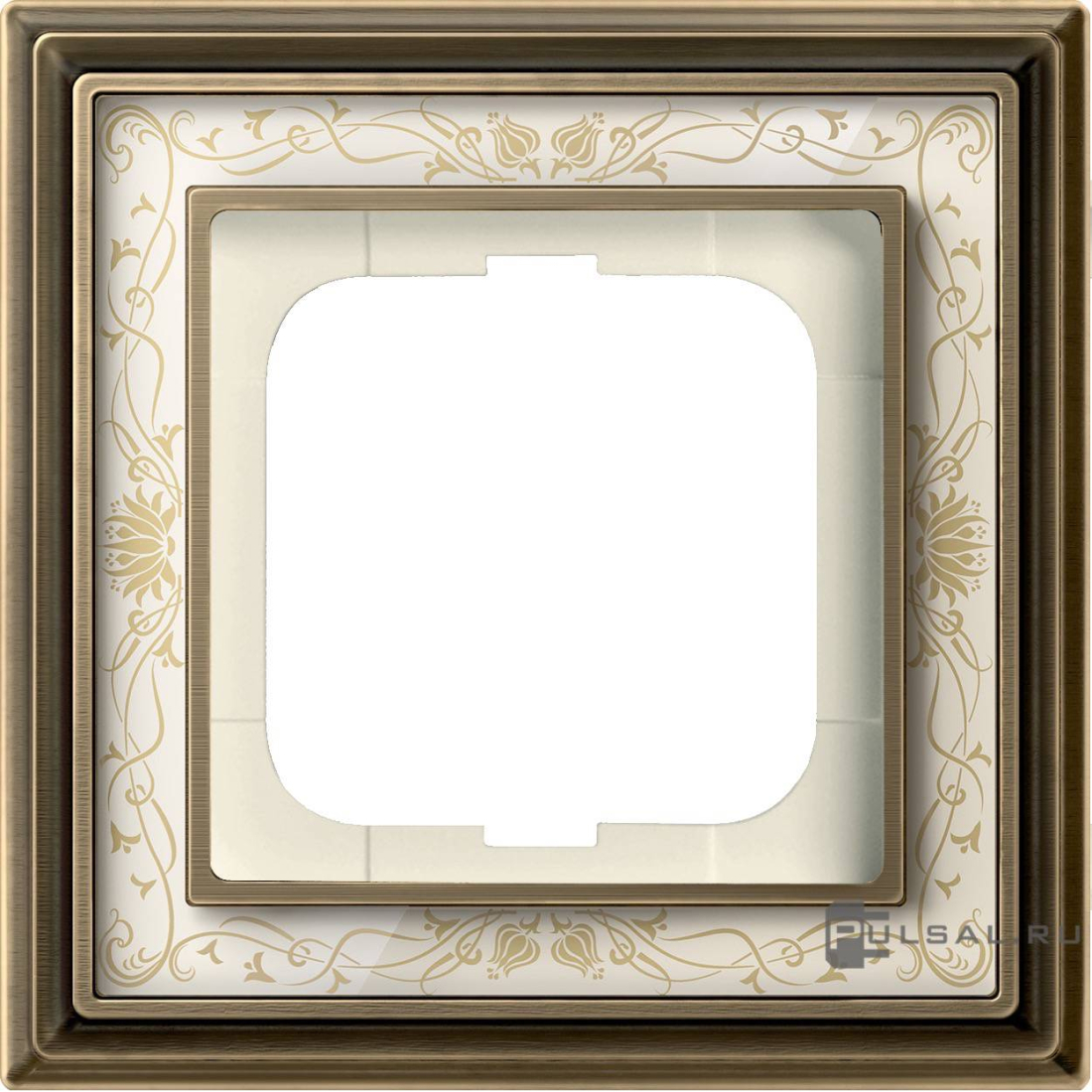 Рамка ДИНАСТИЯ, 1 пост, цвет - латунь античная, белая роспись, металл, стекло
