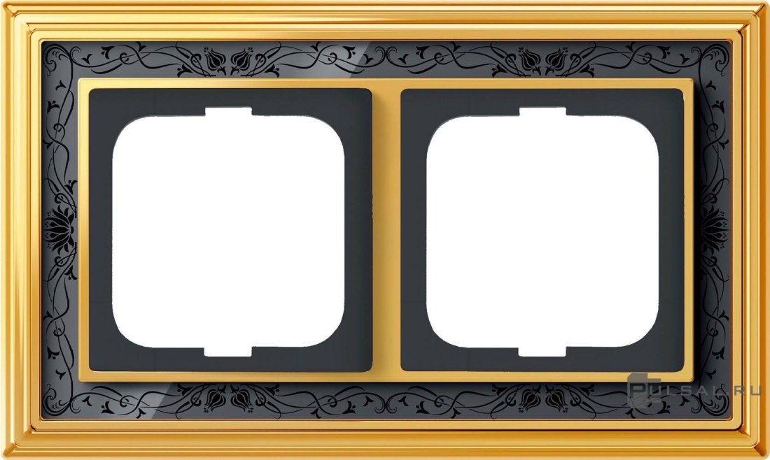 Рамка ДИНАСТИЯ, 2 поста, цвет - латунь полированная, черная роспись, металл, стекло
