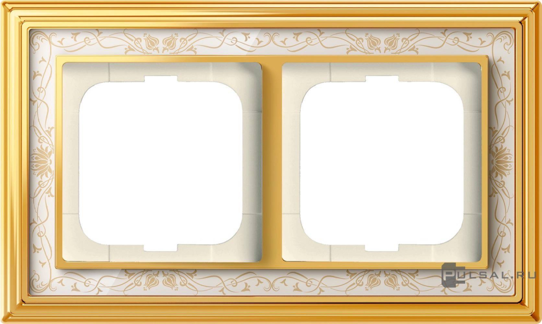 Рамка ДИНАСТИЯ, 2 поста, цвет - латунь полированная, белая роспись, металл, стекло