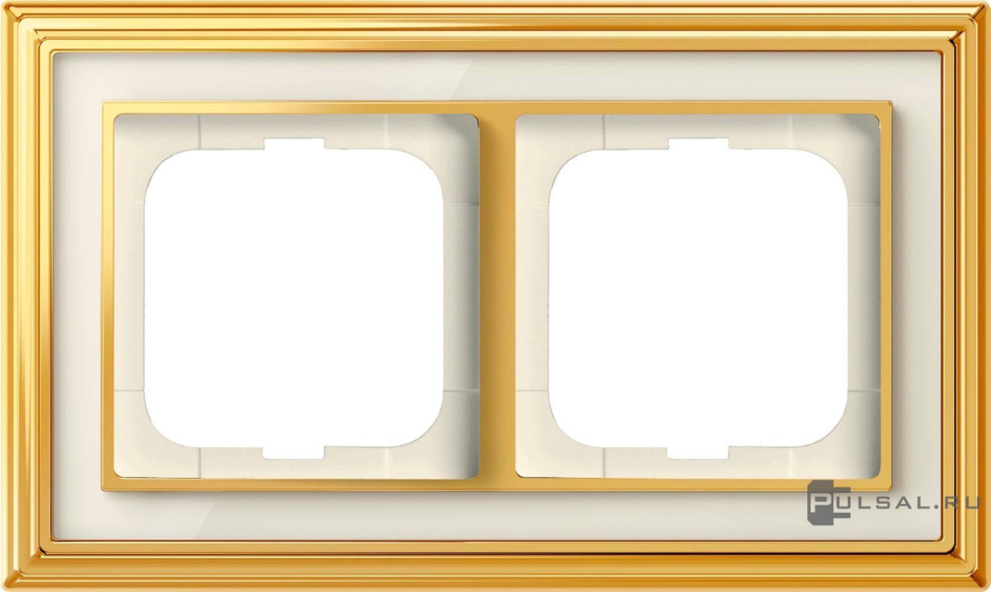 Рамка ДИНАСТИЯ, 2 поста, цвет - белое стекло, латунь полированная, металл, стекло