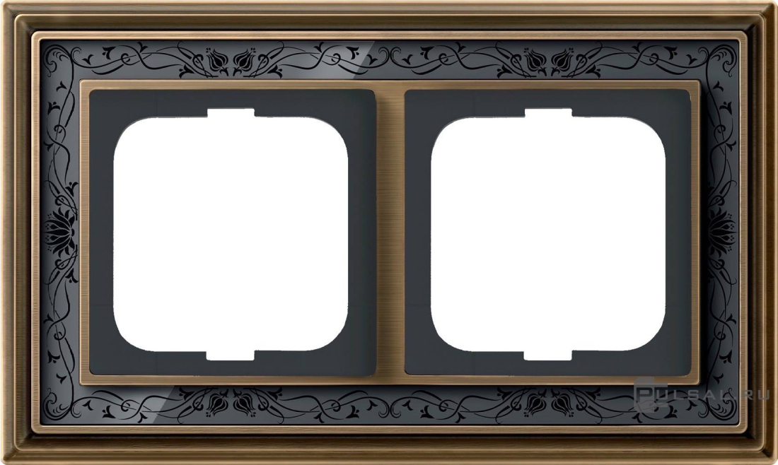 Рамка ДИНАСТИЯ, 2 поста, цвет - латунь античная, черная роспись, металл, стекло