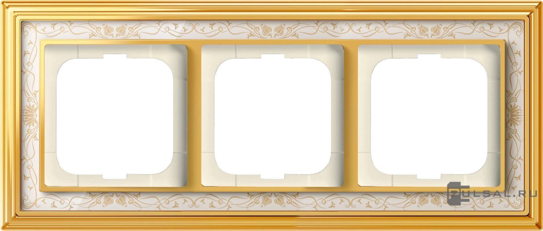 Рамка ДИНАСТИЯ, 3 поста, цвет - латунь полированная, белая роспись, металл, стекло