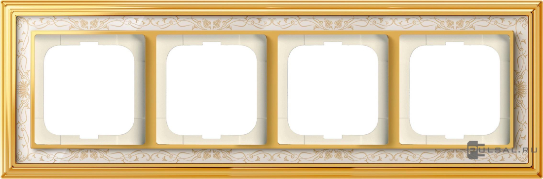 Рамка ДИНАСТИЯ, 4 поста, цвет - латунь полированная, белая роспись, металл, стекло