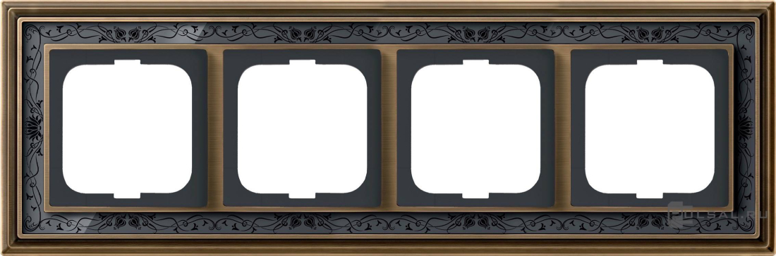 Рамка ДИНАСТИЯ, 4 поста, цвет - латунь античная, черная роспись, металл, стекло