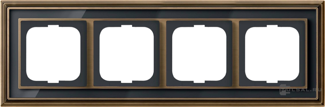 Рамка ДИНАСТИЯ, 4 поста, цвет - латунь античная, черное стекло, металл, стекло