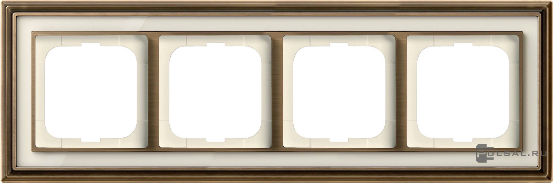 Рамка ДИНАСТИЯ, 5 постов, цвет - латунь античная, белое стекло, металл, стекло