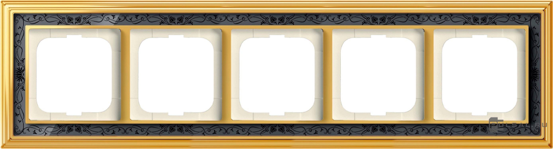Рамка ДИНАСТИЯ, 5 постов, цвет - латунь полированная, черная роспись, металл, стекло