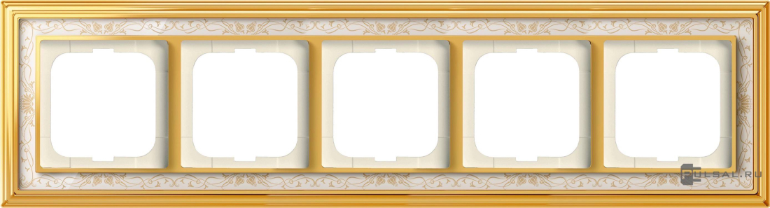Рамка ДИНАСТИЯ, 5 постов, цвет - латунь полированная, белая роспись, металл, стекло