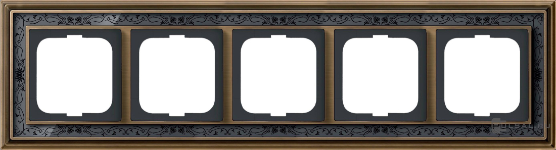 Рамка ДИНАСТИЯ, 5 постов, цвет - латунь античная, черная роспись, металл, стекло