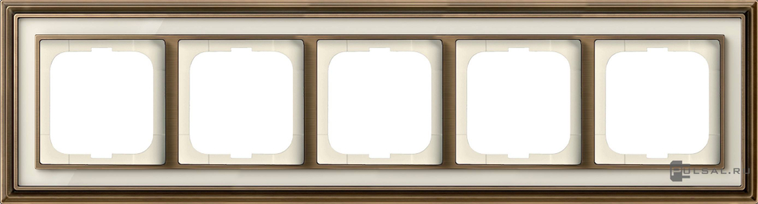 Рамка ДИНАСТИЯ, 5 постов, цвет - белое стекло, латунь полированная, металл, стекло