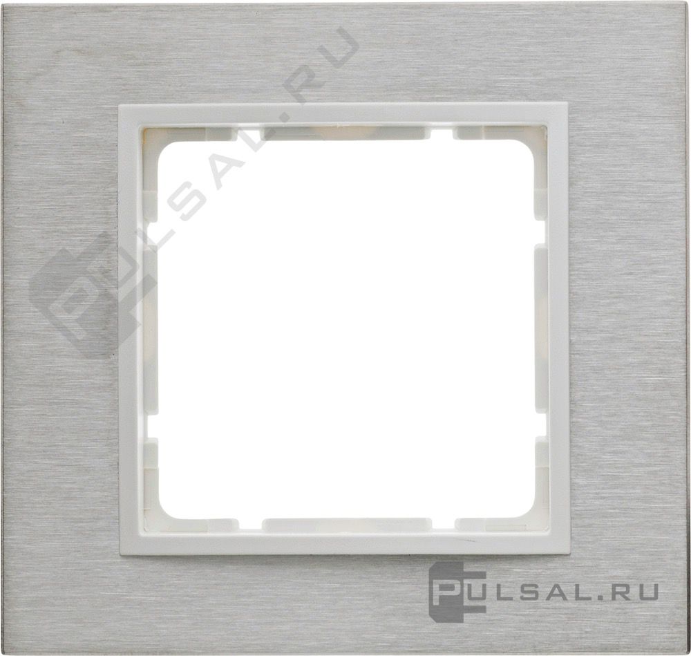 Рамкa B.7, 1 пост, цвет - нержавеющая сталь, белый матовый, металл