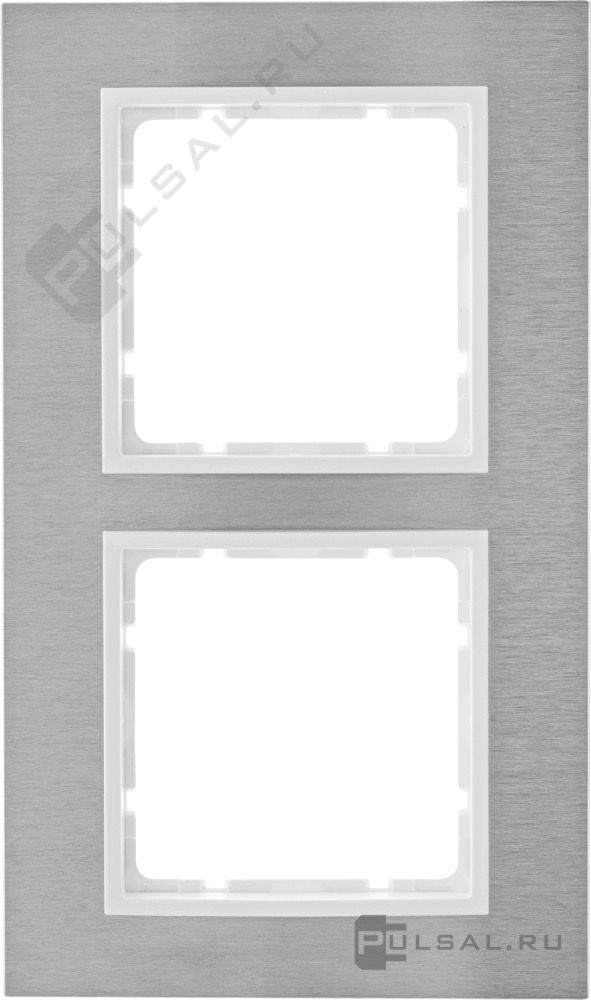 Рамкa B.7, 2 поста, цвет - нержавеющая сталь, белый матовый, металл