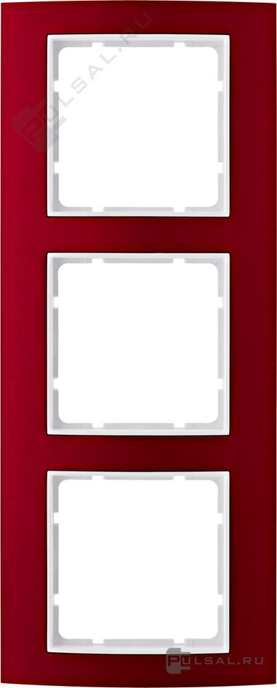 Рамкa B.3, 3 поста, цвет - красный, белый матовый, металл