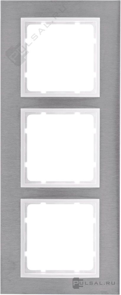 Рамкa B.7, 3 поста, цвет - нержавеющая сталь, белый матовый, металл