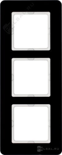 Рамкa Q.7, 3 поста, цвет - черный глянцевый, черный, стекло