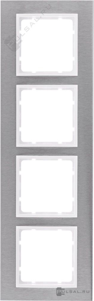 Рамкa B.7, 4 поста, цвет - нержавеющая сталь, белый матовый, металл