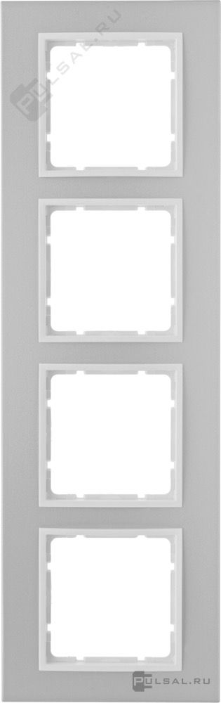 Рамкa B.7, 4 поста, цвет - алюминий, белый матовый, металл