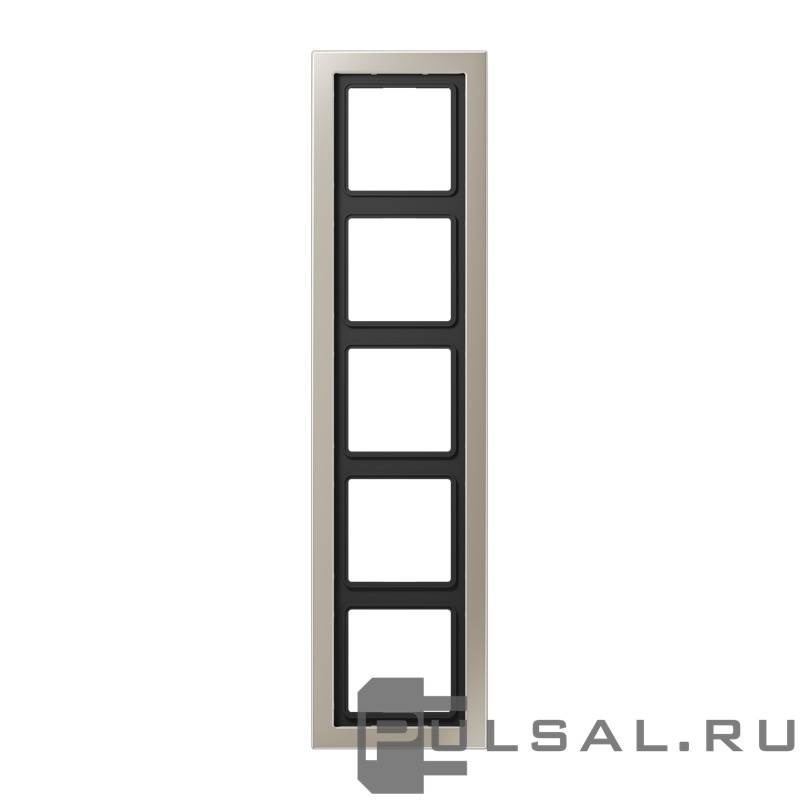 Рамка LS-design, 5 постов, цвет - нержавеющая сталь, металл