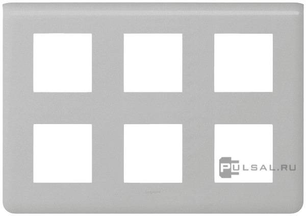 Рамка специальная 3х2 Mosaic, 6 постов, цвет - алюминий, пластмасса