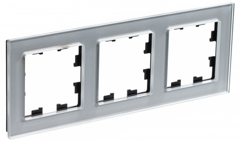 Рамка Atlas Design, 3 поста, цвет - алюминий стекло, стекло акриловое