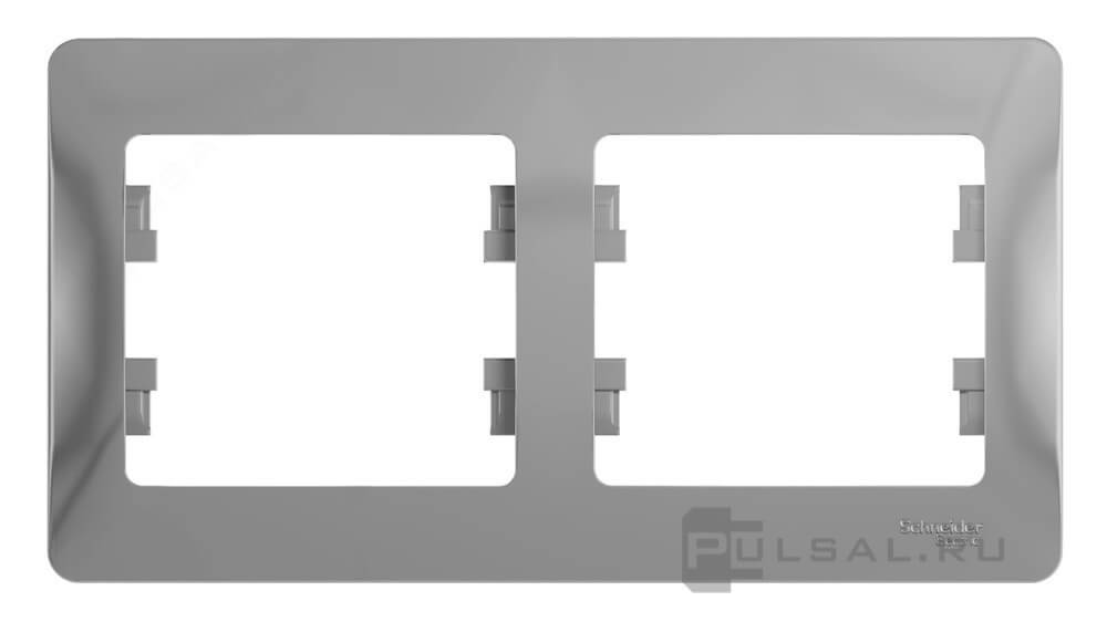 Рамка Glossa, 2 поста, цвет - алюминий, пластмасса