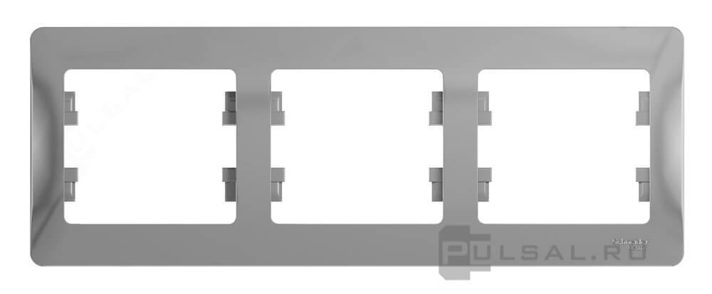 Рамка Glossa, 3 поста, цвет - алюминий, пластмасса