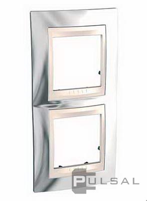Рамка Unica Хамелеон, 2 поста, цвет - хром, бежевый, металл
