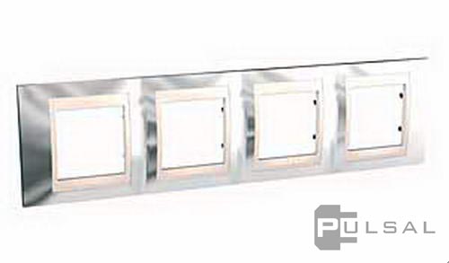 Рамка Unica Хамелеон, 4 поста, цвет - хром, бежевый, металл