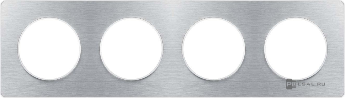 Рамка Odace, 4 поста, цвет - алюминий полированный, алюминий, металл