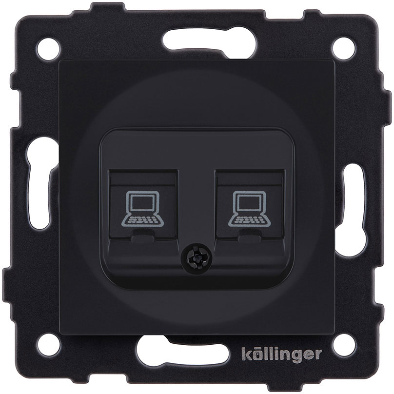 Розетка компьютерная 2 x RJ45 Cat.6 Aspekt, Eleganz, Reflex, двойная, цвет - черный матовый