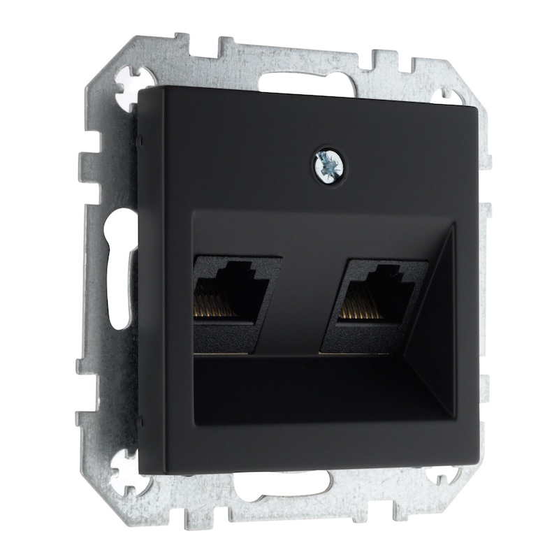 Розетка компьютерная RJ45 Cat.6 (UTP) Epsilon, Retro Liregus, двойная, цвет - черный матовый