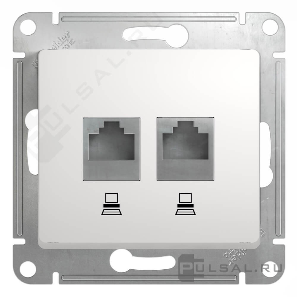 Розетка компьютерная 2 x RJ45 Cat.5e (UTP) Glossa, двойная, цвет - белый