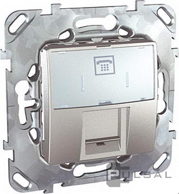 Розетка телефонная RJ12 Unica Quadro, Unica Top, Unica Class, одинарная, цвет - алюминий