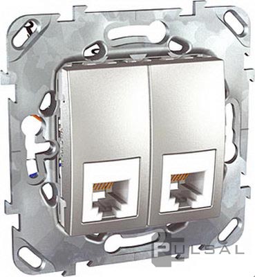 Розетка телефонная RJ12 Unica Quadro, Unica Top, Unica Class, двойная, цвет - алюминий