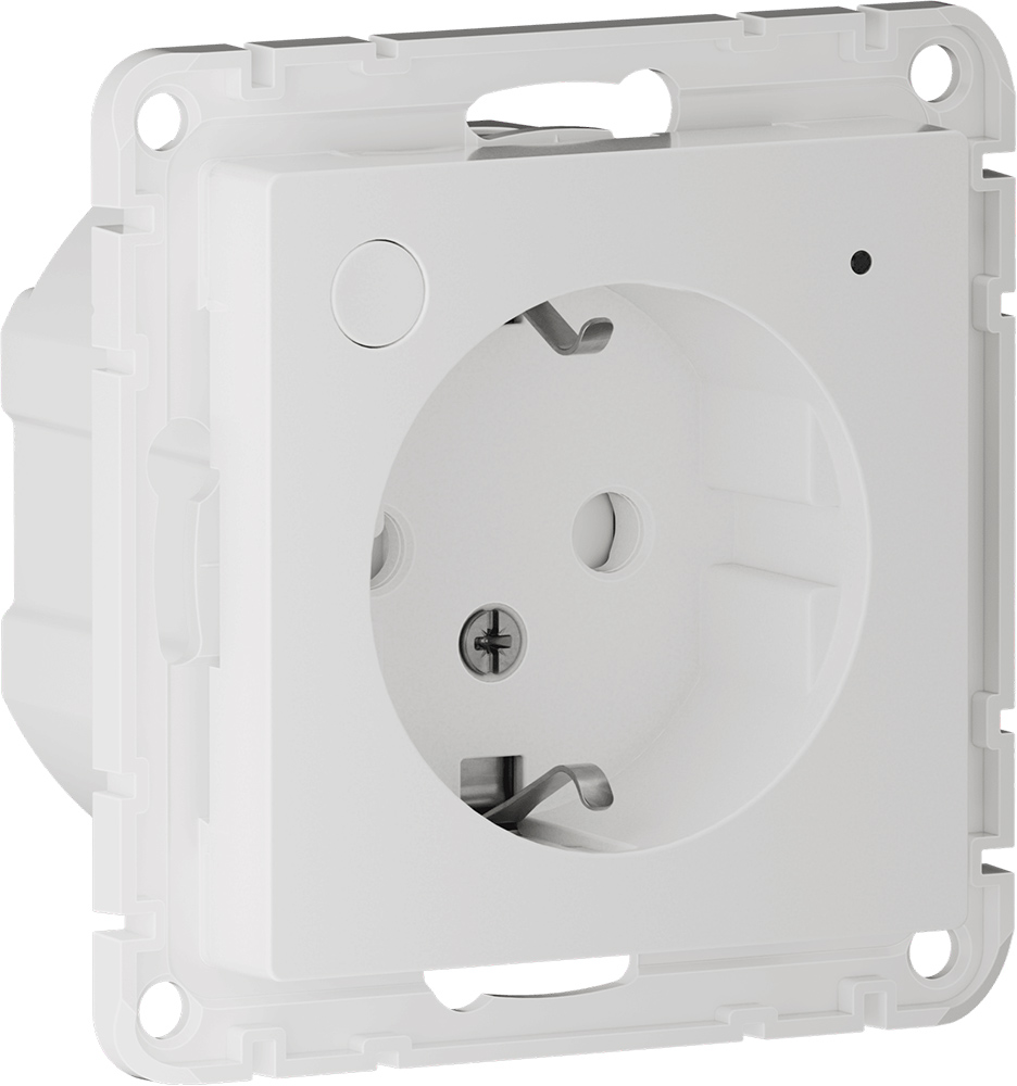 Умная розетка, 16А AtlasDesign Smart, со шторками, с заземлением, одинарная, винтовые клеммы, цвет - белый