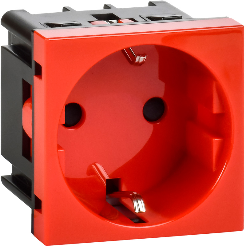 Розетка Mosaic, DLP, DLP floor, DLP IP 44, DLP IP 40, без шторок, с заземлением, одинарная, безвинтовые клеммы, цвет - красный