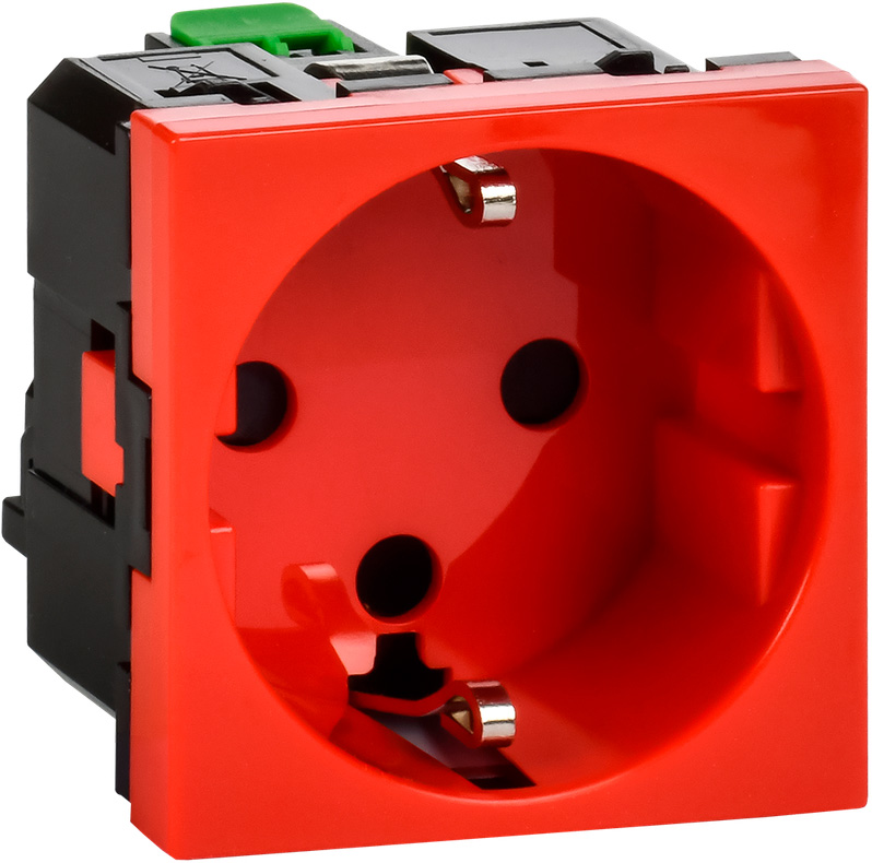 Розетка Mosaic, DLP, DLP floor, DLP IP 44, DLP IP 40, с заземлением, одинарная, безвинтовые клеммы, цвет - красный